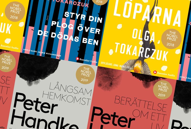 2018 och 2019 års Nobelpristagare i nyinläsningar. Anna Maria Käll läser Olga Tokarczuks Löparna och Marie Richardson Styr din plog över de dödas ben. Jonas Malmsjö läser Peter Handkes Berättelse om ett liv och Gerhard Hoberstorfer Långsam hemkomst.